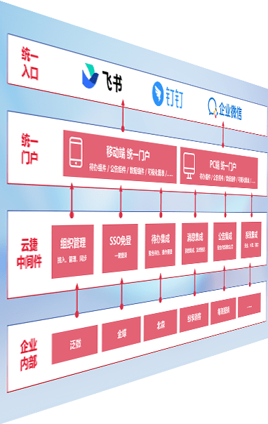 对协作平台提供支持服务,,,支持企业应用与协作平台对接,,,包含组织同步、、、、消息集成、、待办集成等。。。支持目前主流的协作平台:钉钉、、、、企微和飞书。。。